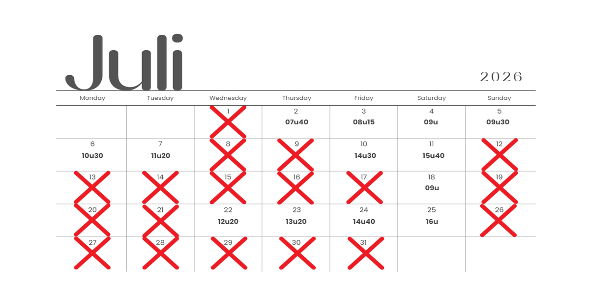 Période: du 1 avril au 31 octobre (été)